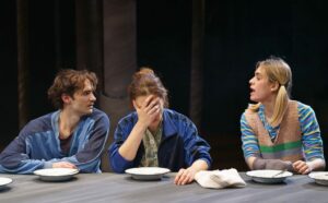 The adaptation is based on the novel Memory of the forest by Damir Karakaš, a partly autobiographical story about a boy with a heart condition growing up in rural Lika. While the dramatic situations depict a basic — and often harsh — reality, they are countered by the boy’s inner world of imagination, shaped onstage through live music and sound images created from a variety of objects. This distinctive musical-sonic code gave the play a strong lyrical atmosphere, set in counterpoint to the cruelty of the story itself.