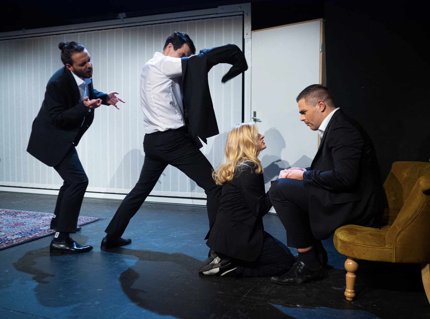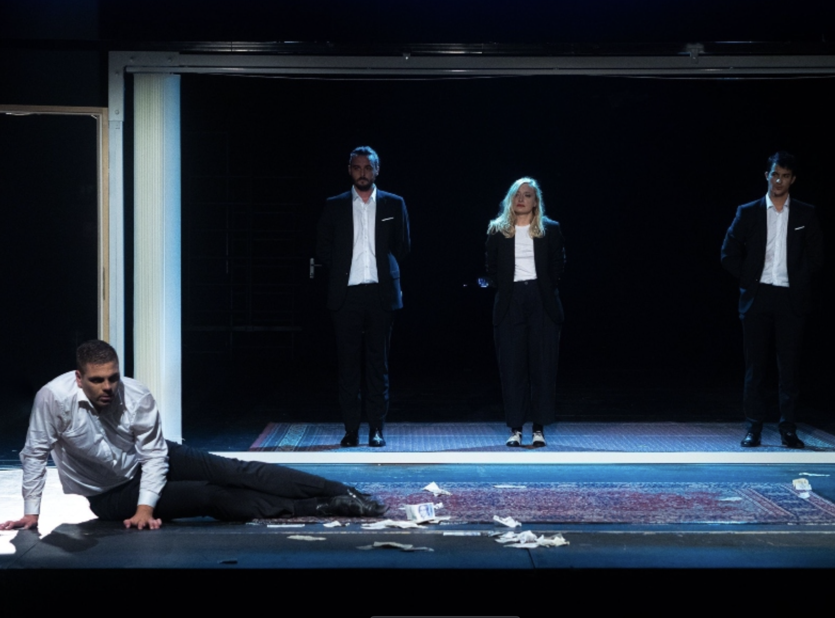 The original text explores the loss of identity triggered by climbing the capitalist ladder. The main dramaturgical approach while working on the adaptation was to compress the play to its key dramatic situations and transform certain dialogue-heavy passages into monologue sequences, thereby amplifying the psychological states of the characters. To emphasise the absurdity embedded in the piece, the acting style was shaped in the direction of the grotesque.