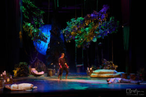 This adaptation of the enchanted-night story aims straight for the heart of the dramatic — and therefore performative — action, shaped onstage through exceptionally fast and dynamic play. Alongside Shakespeare’s “theatre within the theatre” device, several new scenes were created entirely anew through actors’ improvisations. The thematic focus of the play is love, set in stark contrast to the cruelty found not only in the fairy world, but also in the human one — with one crucial difference: the otherworldly realm never hesitates to reveal it.